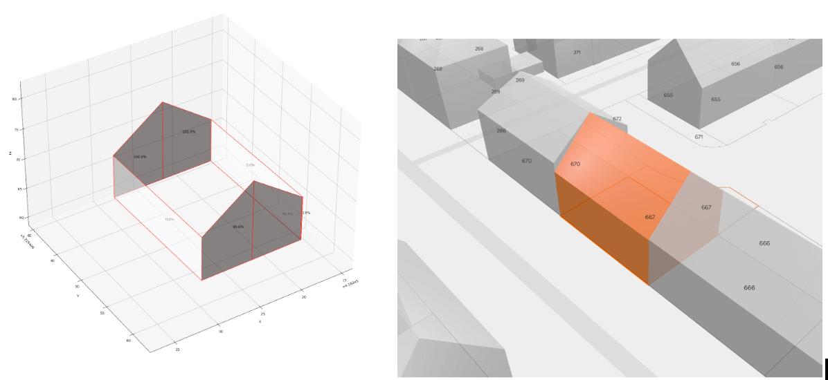 Für die Fassadensanierung ist es wichtig, den Teilbereich der freien Fassade eines jeden Objekts zu kennen. Diese Angaben sind jetzt auf der Plattform verfügbar. Für 21 Millionen Gebäude wurde geometrisch geprüft, ob die Fassaden frei sind oder sich ein Nachbargebäude an der Fassade befindet. Auch unterschiedliche Höhen kann syte nun erkennen. Dies dient unter anderem als Datengrundlage zur Bestimmung des Energiebedarfs. Zusätzlich zeigt syte, je nach Datenverfügbarkeit, an, welche Dachform ein Objekt hat.