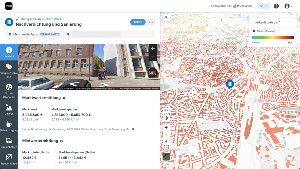 PriceHubble hat sich mit seinen Dossiers als verlässlicher Anbieter etabliert, um Lagen und Werte von Grundstücken noch genauer zu beurteilen. Die Einbindung dieser Dossier-Funktion in syte Profit ist daher ein logischer und strategischer Schritt, um das Beste aus beiden Welten zu vereinen. Ab sofort können Sie mit einem entsprechenden Abo direkt aus syte Profit auf diese wertvollen Informationen zugreifen, was den Prozess der Immobilienbewertung für Sie schneller und effizienter macht.