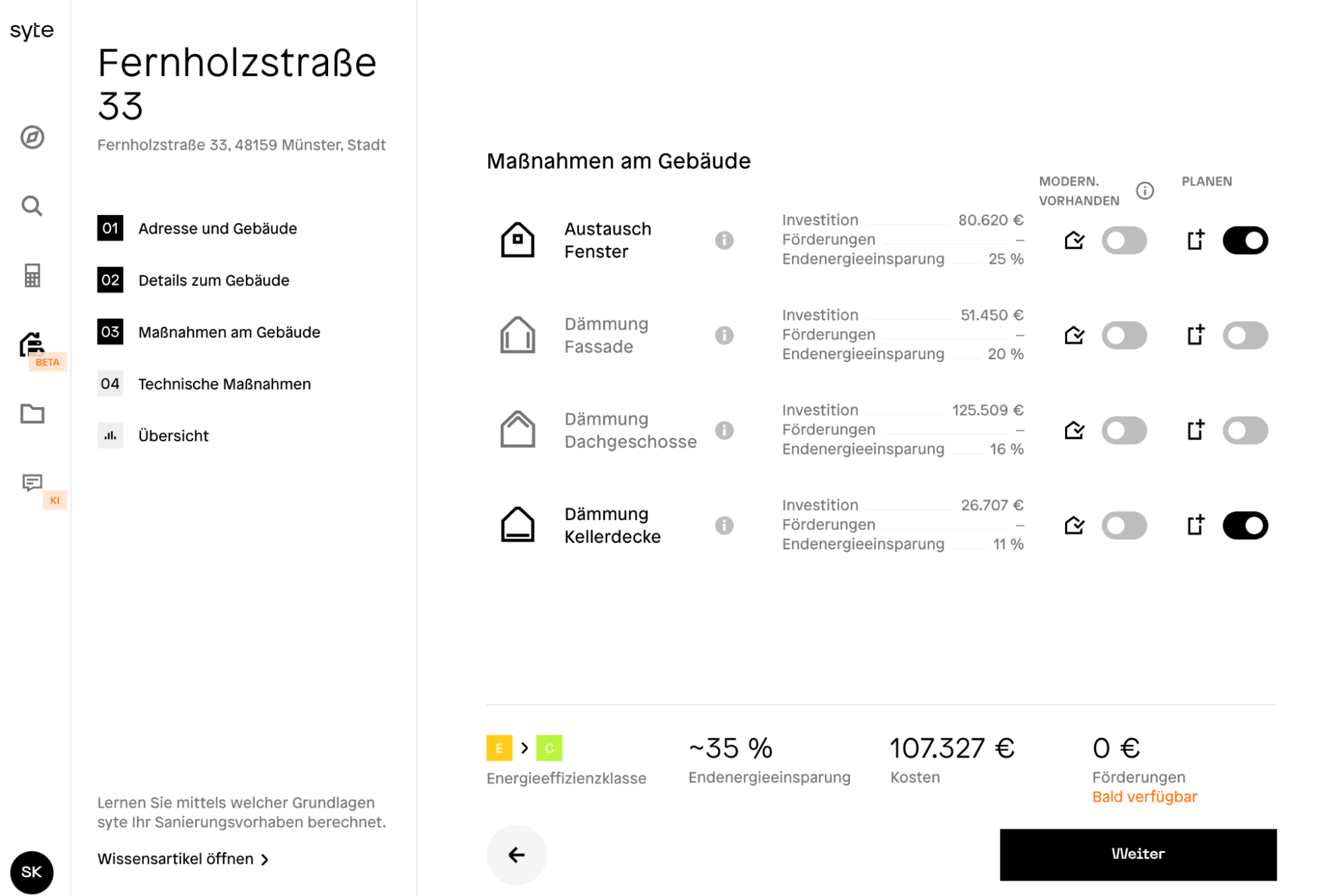 - Präzise Empfehlungen: Modernisierungskonzepte basierend auf Baualtersklassen, Energieeinsparpotenzialen und geschätzten Sanierungskosten